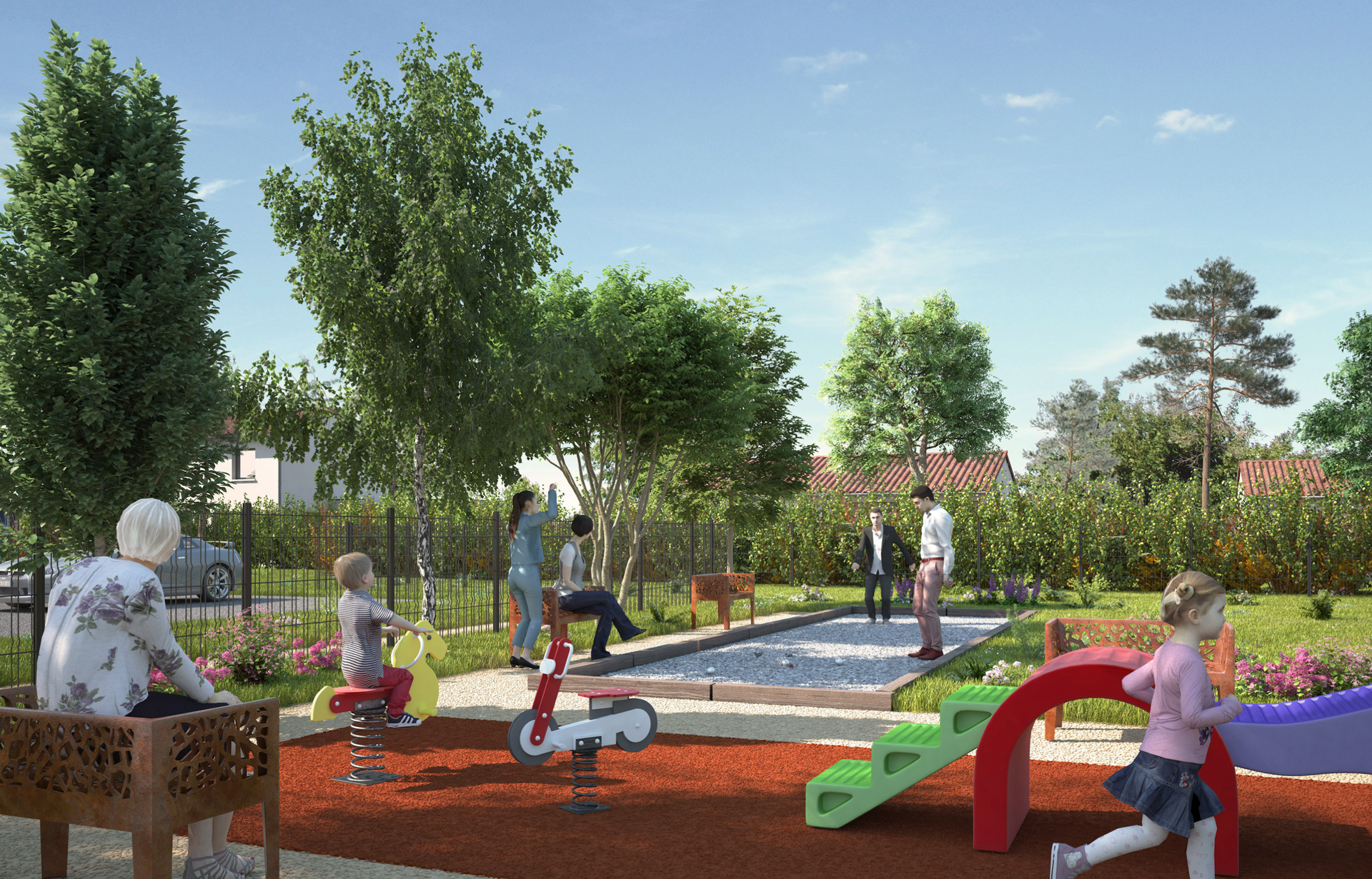 - Espaces partagés conviviaux (boulodrome, jeux d’enfants…)